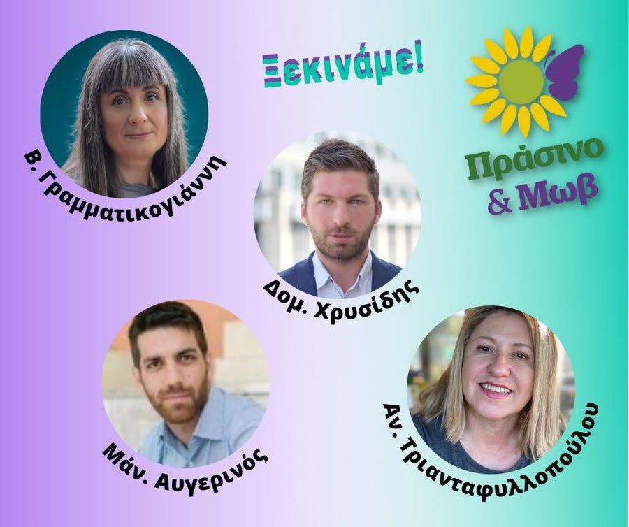 Η συμμαχία “Πράσινο και Μωβ” παρουσίασε την Δευτέρα 30/1/2023, στα ΜΜΕ τους δύο συν-επικεφαλής της για την προεκλογική εκστρατεία – Δομήνικο Χρυσίδη και Βασιλική Γραμματικογιάννη – καθώς και τα κύρια σημεία του προγράμματός της για την οικονομία, τους δημοκρατικούς θεσμούς, το κράτος δικαίου, την κοινωνική δικαιοσύνη, την κλιματική και οικολογική κρίση, τους/τις νέους/ες, την ακρίβεια, την ενεργειακή κρίση, τη φτώχεια, την παιδεία, τα ανθρώπινα και κοινωνικά δικαιώματα, την διαφθορά, τις εξορύξεις, τις πολιτικές ισότητας και φύλων και την Ευρώπη.
