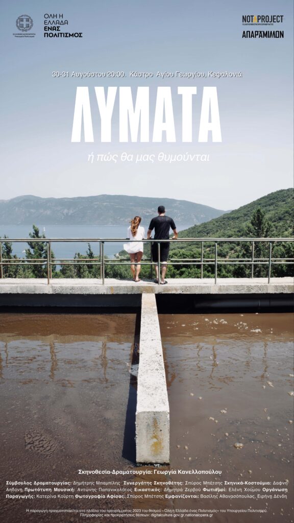 Η Εφορεία Αρχαιοτήτων Κεφαλληνίας και Ιθάκης συμμετέχει για τρίτη φορά στην επιτυχημένη δράση του Υπουργείου Πολιτισμού «Όλη η Ελλάδα ένας Πολιτισμός», φιλοξενώντας στο Κάστρο του Αγίου Γεωργίου για δύο μέρες, Τετάρτη 30 και Πέμπτη 31 Αυγούστου 2023, στις 20.00, την παράσταση Λύματα ή Πώς θα μας θυμούνται, σε σκηνοθεσία και δραματουργία Γεωργίας Κανελλοπούλου.