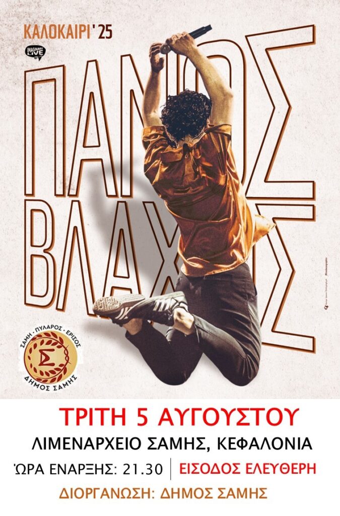 Αύριο, Τρίτη 5 Αυγούστου υποδεχόμαστε τον Πάνο Βλάχο σε μια μοναδική συναυλία στο λιμάνι της Σάμης και ώρα 21.30. Απρόβλεπτος, πολυτάλαντος και πάντα αληθινός ο Πάνος Βλάχος δεν χωράει σε καλούπια. Ηθοποιός, τραγουδοποιός και performer με έντονη προσωπικότητα, ξεχωρίζει για την αυθεντικότητα, το κοινωνικό του σχόλιο και την ανεπιτήδευτη σκηνική του παρουσία. Είτε πάνω σε θεατρική σκηνήείτε με μια κιθάρα στο χέρι, ο Πάνος δεν ακολουθεί την πεπατημένη — τη χαράζει μόνος του.