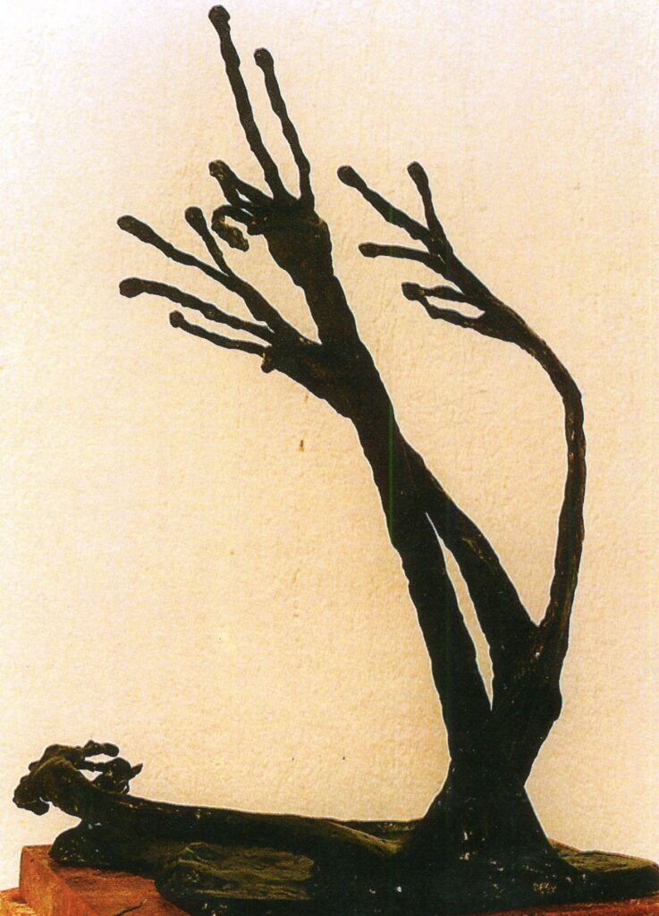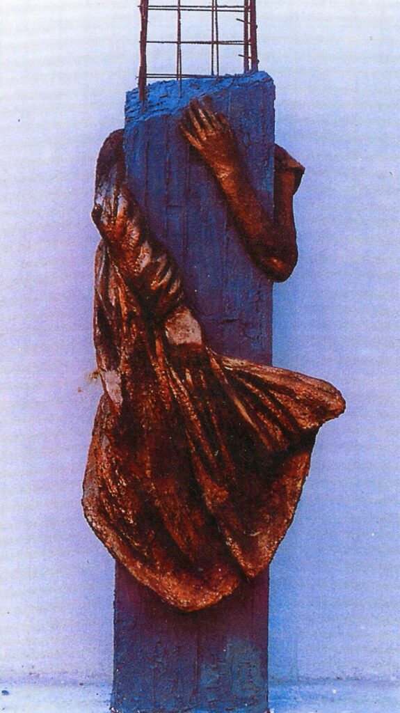 Ειδικά οι γλυπτικές συνθέσεις του στο χώρο με τις παλάμες των χεριών που ανοίγουν εξπρεσιονιστικά και ορθώνονται μνημειακά προς τον ουρανό, όπως και οι τσιμεντένιες στήλες της αντιπαροχής που αγκαλιάζονται από ανθρώπινα μέλη, συνοψίζουν το απόσταγμα των αισθητικών του πεποιθήσεων και του βιωμένου καλλιτεχνικού του είναι.