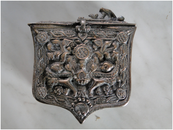 Η παλάσκα του Λεωνίδα Καμπίτση, πιθανόν αρχές 19ου αι., άργυρος, 11 χ 10χ1,8 εκ. (πρόσθια όψη).