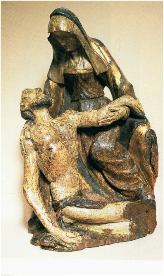 Pieta (Θρήνος), πιθανότατα β΄ήμισυ 14ου αιώνα ή πρώιμου 15ου, ζωγραφισμένο ξυλόγλυπτο, ύψ. 38 εκ.