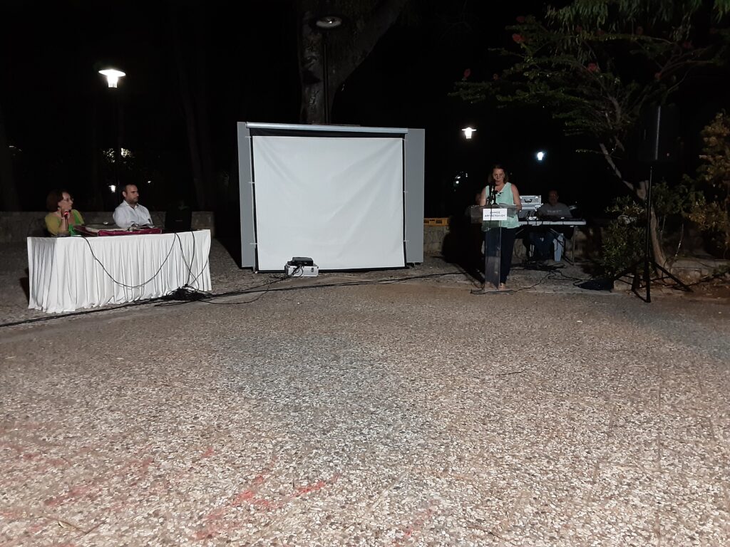 Η βραδιά όμως δεν είχε τελειώσει ακόμη… Στο βήμα ανέβηκε η Ελένη Λιναρδάτου για να μας παρουσιάσει το χορευτικό πρόγραμμα που ακολούθησε από τον πολιτιστικό σύλλογο “Ο Μπάλλος”. Οι χορεύτριες και οι χορευτές του Μπάλλου παρουσιάστηκαν γεμάτοι από θετική ενέργεια την οποία κατάφεραν να μας μεταδώσουν! Τραγούδησαν, χόρεψαν και εντυπωσίασαν τους πάντες με τις δυναμικές και παραστατικές φιγούρες τους! Με μεγάλη χαρά σας παρουσιάζουμε το βίντεο με ολόκληρο το χορευτικό πρόγραμμα που παρουσιάστηκε στον κήπο του Νάπιερ με τους δύο πρώτους χορούς να αποδίδονται με τη μουσική υπόκρουση του σκορτσάμπουνου του Μπάμπη Κακαρούμπα!