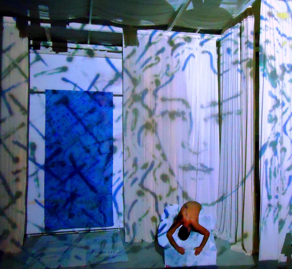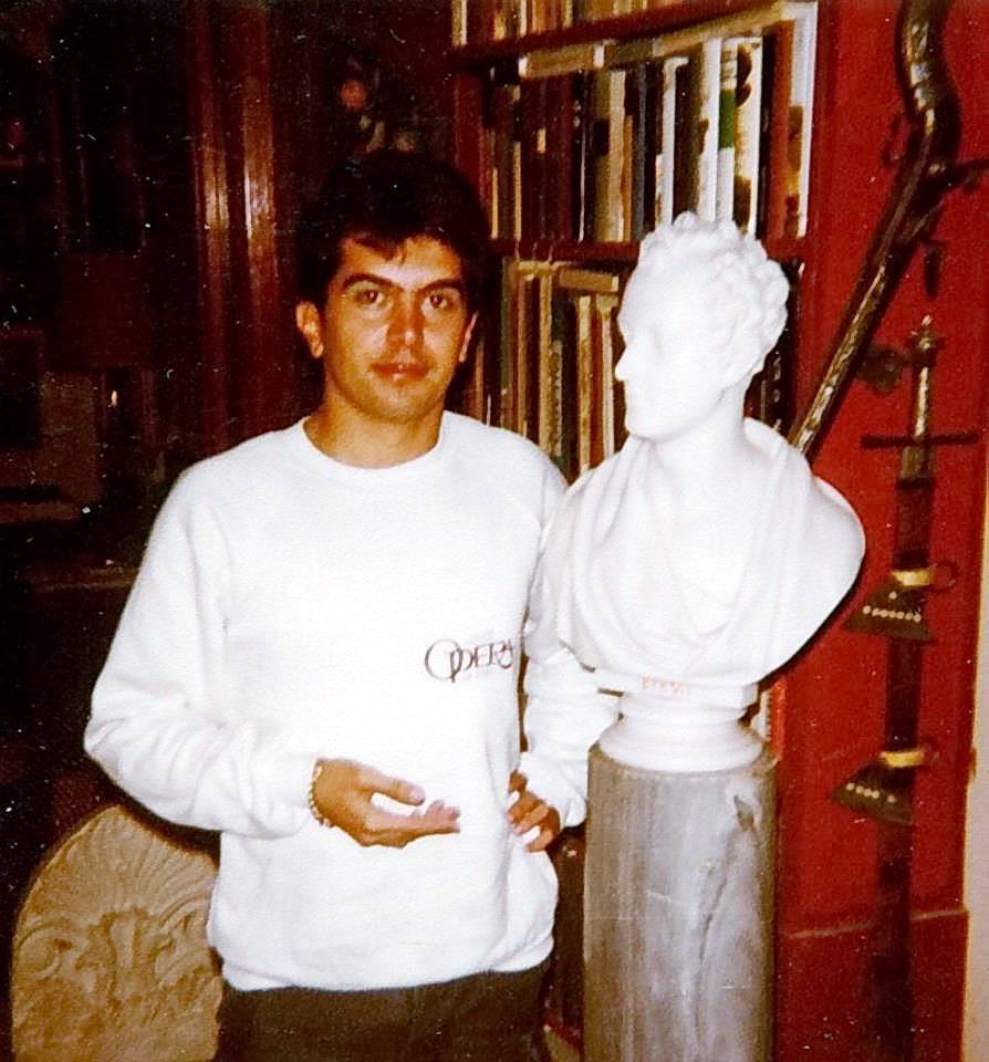 Το 1988 την εποχή της ακμής των εικαστικών performance μου-Ζωντανά εικαστικά έργα στον χώρο- μου ανατέθηκε από την Ελληνική Εταιρεία Βύρωνος, πρόεδρος της ο αείμνηστος Μάριος- Βύρων Ραίζης καθηγητής αγγλικής λογοτεχνίας της Φιλοσοφικής Σχολής του Πανεπιστημίου Αθηνών, να δημιουργήσω ένα έργο για την πρώτη εκδήλωση της νεοσύστατης Εταιρείας με αφορμή τα 200 χρόνια από την γέννηση του στο BRITISH COUNCIL στην πλατεία Κολωνακίου στην Αθήνα. Έδρασα κυριολεκτικά με “Βυρωνική” τόλμη για τα δεδομένα διάθεση, ενώ απαιτήθηκαν πολλές διαβουλεύσεις από τους διπλωματικούς υπεύθυνους για να υλοποιηθεί η ιδέα μου. Διαμόρφωσα μια σύνθεση με συμβολική και εννοιακή αναφορά στη σκηνή ενός ποιητικού θανάτου με κύριο άξονα το γυμνό σώμα του νέου ποιητή που παρέστησε ο χορευτής και τότε ηθοποιός του Εθνικού Θεάτρου Τάκης Λουκάτος από το οποίο ξετυλιγόταν πολό τηλετύπου με χειρόγραφο το περίφημο ποίημα του “Σήμερα που έκλεισα 36 μου χρόνια…”/ “On this Day i complete my Thirty Sixth Year”. Στο πλάι η Μαρία Καλαμάκη μια πανέμορφη Αθηναία, κόρη-δόξα θλιμμένη, ενώ εγώ υπερυψωμένος στο κέντρο της σύνθεσης κρατούσα λάβαρο-σημαία με ζωγραφικά βέλη και την αναγραφή των λέξεων IDEA-FREEDOM-LOVE-DEATH.