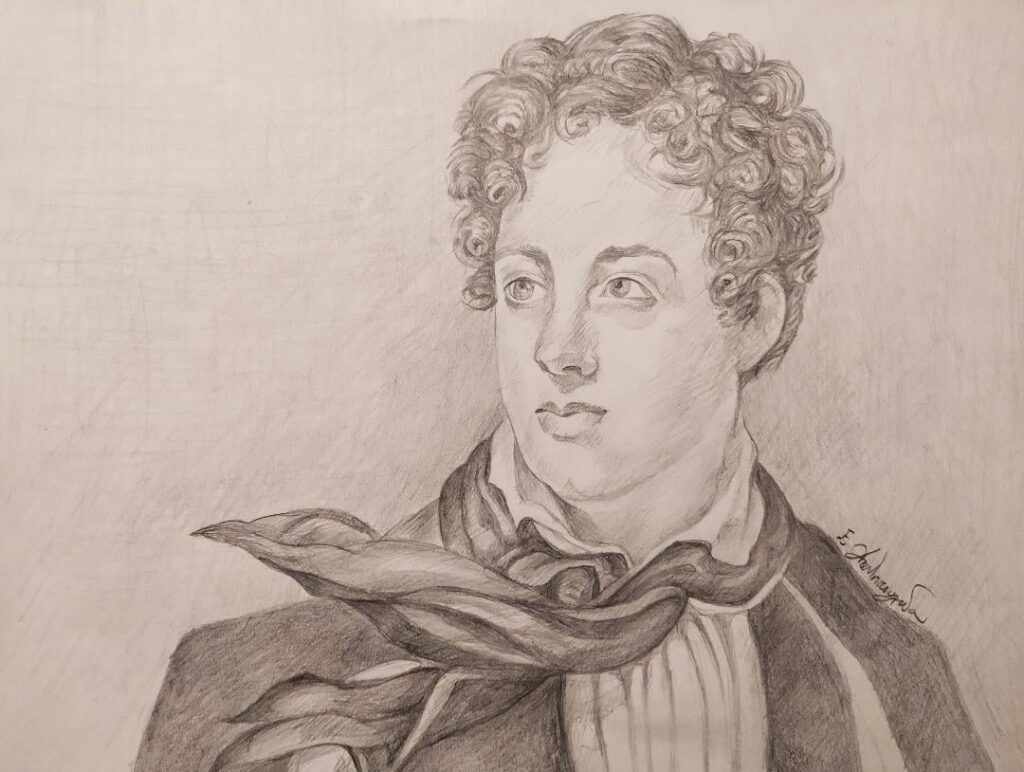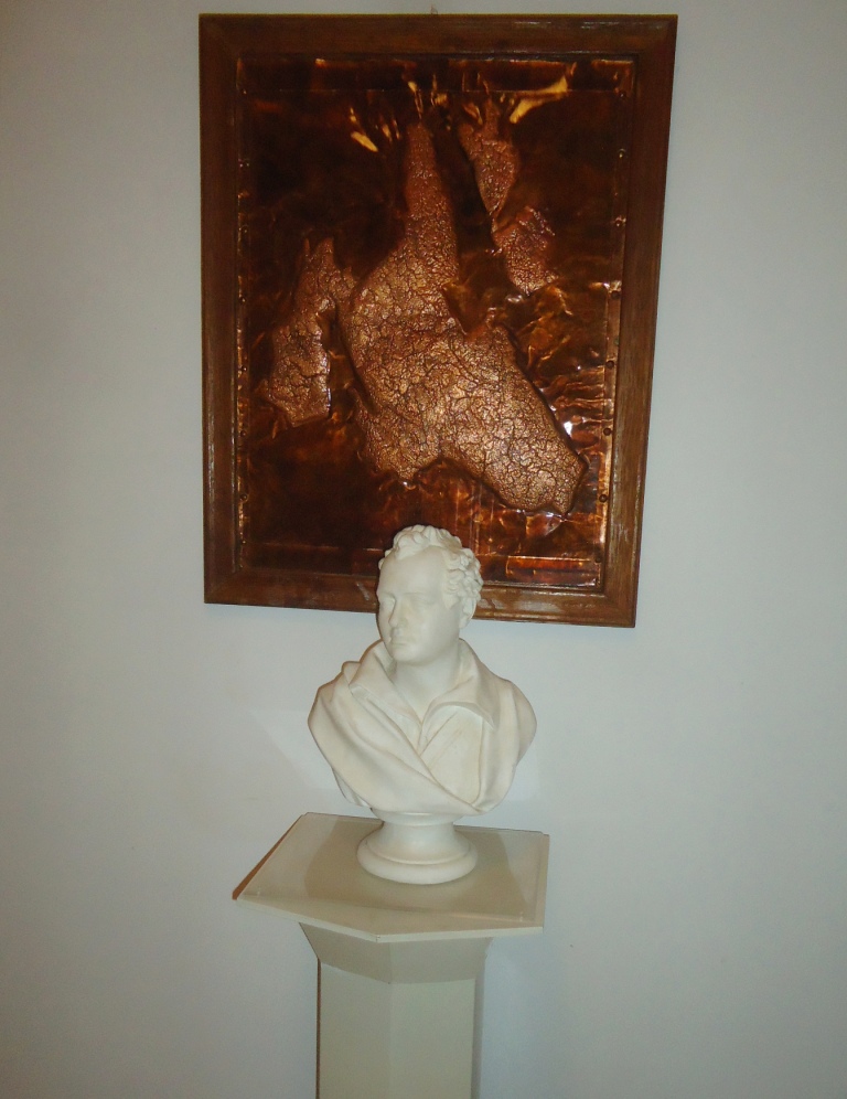 Η φυσιοκρατική και ταυτόχρονα ιδεαλιστική προσωπικότητα εξακολουθεί να εμπνέει σχεδόν μεταφυσικά πολλούς σύγχρονους καλλιτέχνες και στοχαστές! Στη συγκεκριμένη έκθεση-αφιέρωμα που επιμελήθηκα εκτίθενται αντίγραφα προτομών του, γλυπτικές συνθέσεις και ζωγραφικά σχέδια με την μορφή του, λιθογραφίες, εκδόσεις τέχνης και φιλελληνικά αντικείμενα. Η προσωπική μου εντρύφηση στην εξιδανικευμένη προσωπικότητα και το έργο του ξεκίνησε από την παιδική μου ηλικία στην Λακήθρα της Κεφαλονιάς που επισκεπτόμουν συχνά την τοποθεσία “Ο Βράχος του Βύρωνα” που ο ποιητής κατά την παραμονή του στην Κεφαλονιά (κτήση της Μεγάλης Βρετανίας τότε), σε οικία των Μεταξάτων (Αύγουστος 1823- Ιανουάριος 1824) πήγαινε συχνά και στοχαζόταν, ενώ σε μια μαρμάρινη πλάκα αναγράφεται η αποδιδόμενη ρήση του “Αν είμαι ποιητής το οφείλω εις τον αέρα της Ελλάδος”.