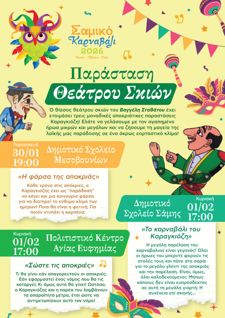 Ετοιμαστείτε λοιπόν για γέλιο, χορό και ατελείωτη διασκέδαση! Το Σαμικό Καρναβάλι ξεκινά!