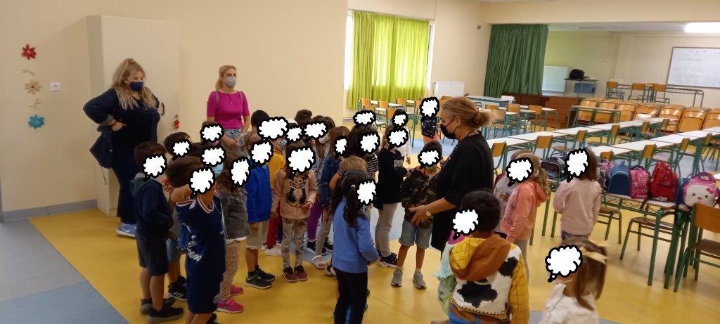 Τα νήπια μαζί με τις εκπαιδευτικούς τους κ. Τασιούλη Γεωργία και κ. Γεωργίου Βασιλική και τον γονέα κ. Κοτίνη Διονύσιο με χαρά, ενθουσιασμό και μεγάλη ανυπομονησία ξεναγήθηκαν στους χώρους του σχολείου, γνώρισαν τη διευθύντρια, τους δασκάλους και τις δασκάλες και συνάντησαν παλιούς συμμαθητές και φίλους.