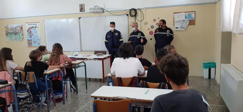 ενημέρωσαν τους μαθητές του Β1 τμήματος για τη δράση της ομάδας τους και τη σημασία του εθελοντισμού. Η Ε.Ο.Δ. ιδρύθηκε το 1996 με σκοπό την προστασία του δάσους, την πρόληψη και καταστολή των πυρκαγιών.