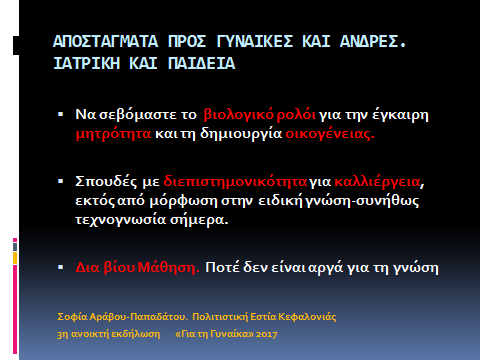 – Λύση είναι η σωστή Πολιτική, ισότιμα για όλους, Άνδρες και Γυναίκες!