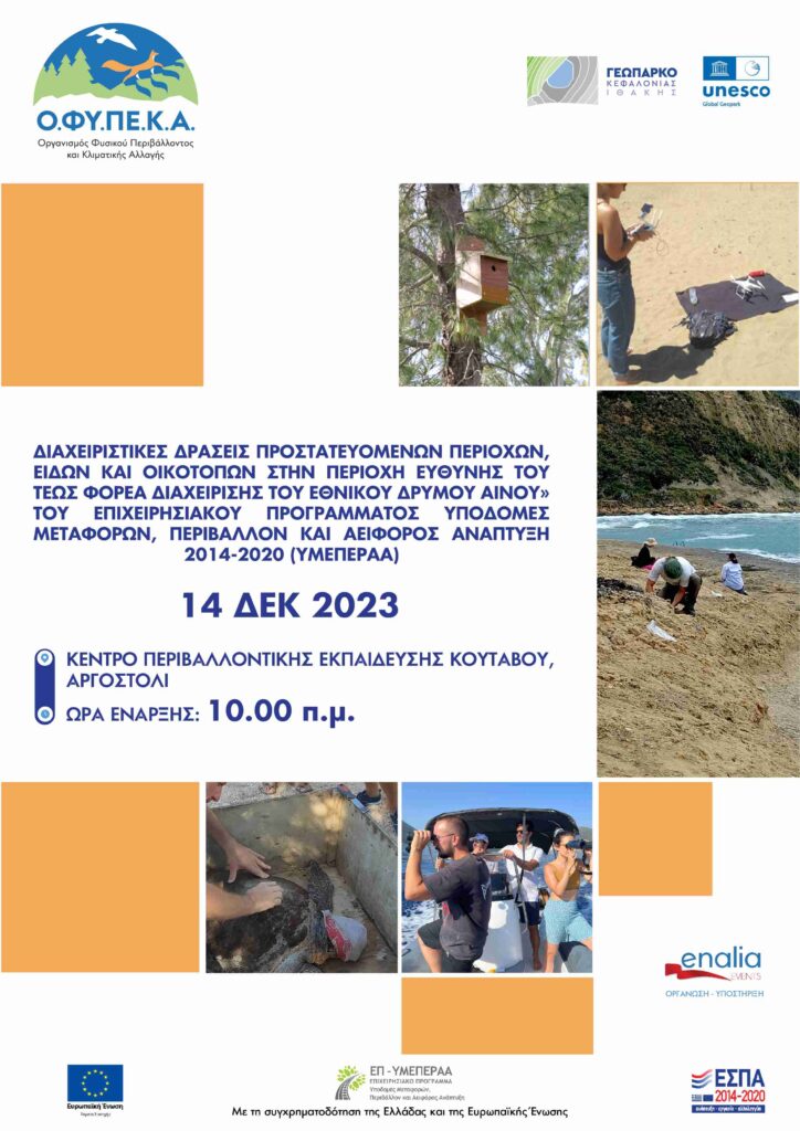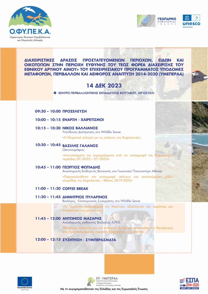 Η ημερίδα θα πραγματοποιηθεί στο Κέντρο Περιβαλλοντικής Ενημέρωσης Κουτάβου στο Αργοστόλι την Πέμπτη 14/12και ώρα 10.00 π.μ. με 13.00