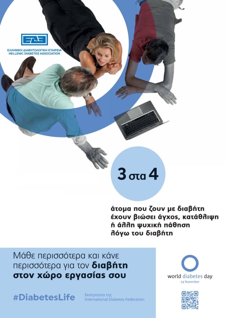 Η σημερινή ημέρα (από το 1991) είναι αφιερωμένη στη νόσο του “Διαβήτη” και κάθε χρόνο έρχεται για να μας αφυπνίσει, ευαισθητοποιήσει, κινητοποιήσει & να μας υπενθυμίσει τόσο τη σημασία της πρόληψης όσο και της υποστήριξης των ατόμων με διαβήτη.