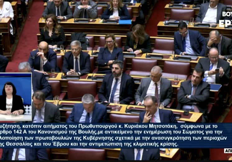 «Οι Πρωτοβουλίες της Κυβέρνησης σχετικά με την ανασυγκρότηση των περιοχών της Θεσσαλίας και του Έβρου και την αντιμετώπιση της κλιματικής κρίσης»