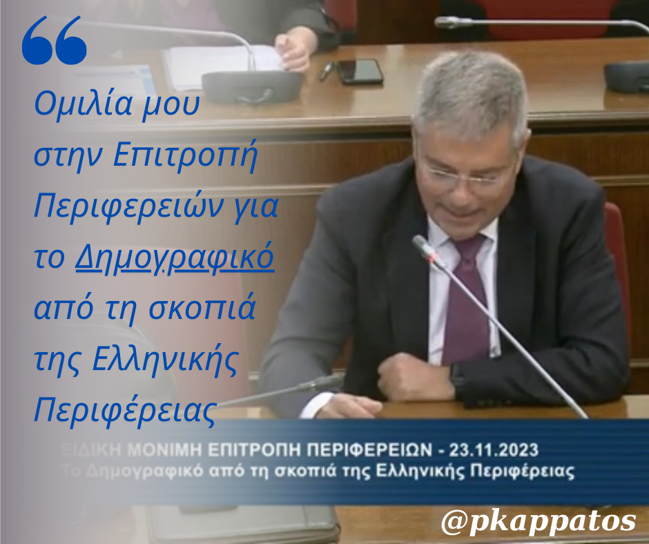 Παναγής Καππάτος:Ομιλία στην Επιτροπή Περιφερειών για το Δημογραφικό από τη σκοπιά της Ελληνικής Περιφέρειας