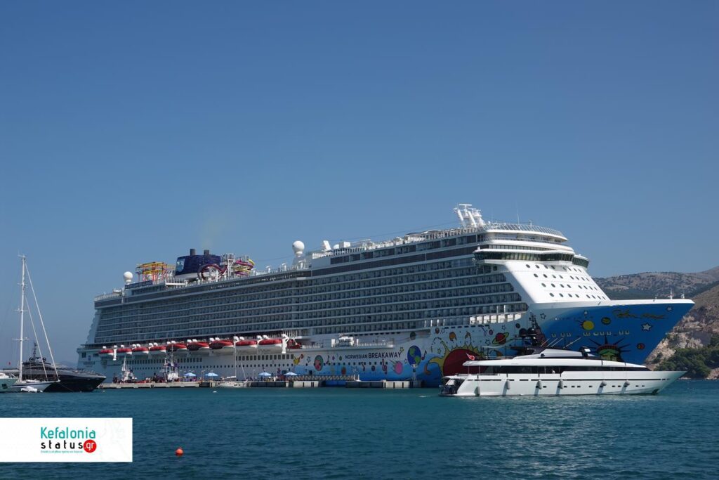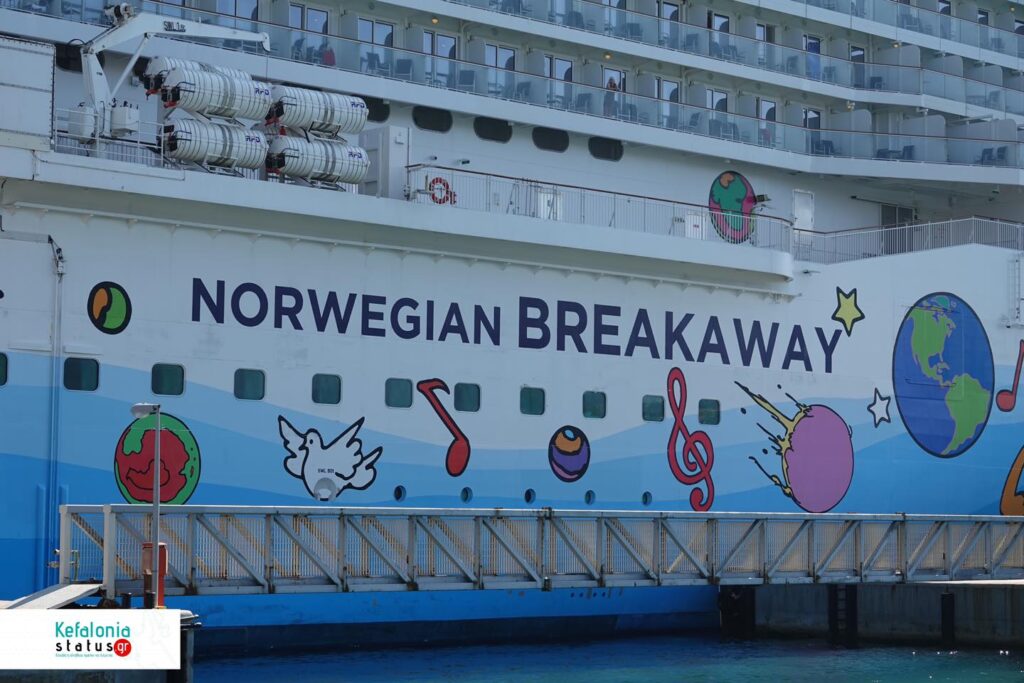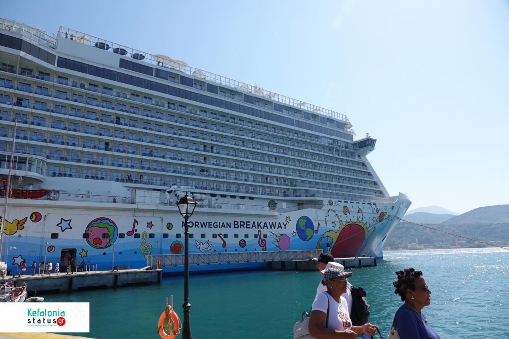 Η σημερινή άφιξη του εντυπωσιακού κρουαζιερόπλοιου Norwegian Breakaway με 4.804 επιβάτες και 1540 ατομα πλήρωμα πλημμύρισε το Αργοστόλι και τις άλλες τουριστικές περιοχές της Κεφαλονιάς τονώνοντας την τοπική κοινωνία και τους επαγγελματίες.