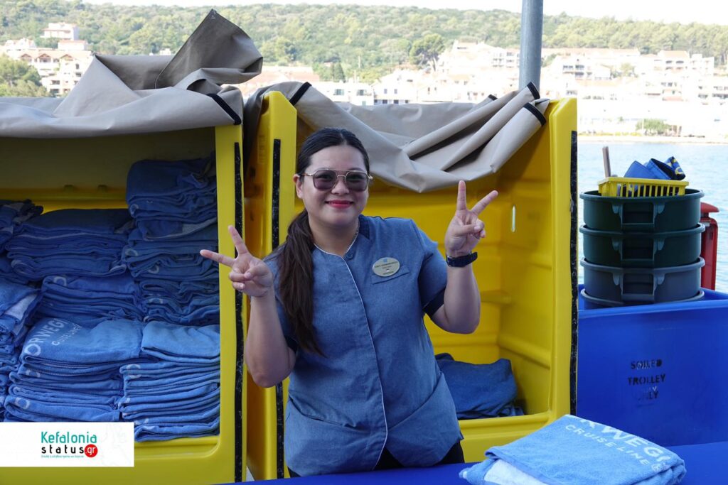 Στο Κρουαζιερόπλοιο, (το οποίο ήρθε από την Μύκονο και θα αναχωρήσει το βράδυ από το Αργοστόλι με προορισμό την Μάλτα) οι 4.800 Αμερικανοί επιβάτες και τα 1540 άτομα πλήρωμα δεν έχασαν την ευκαιρία να ανακαλύψουν το Αργοστόλι και γενικότερα την Κεφαλονιά!