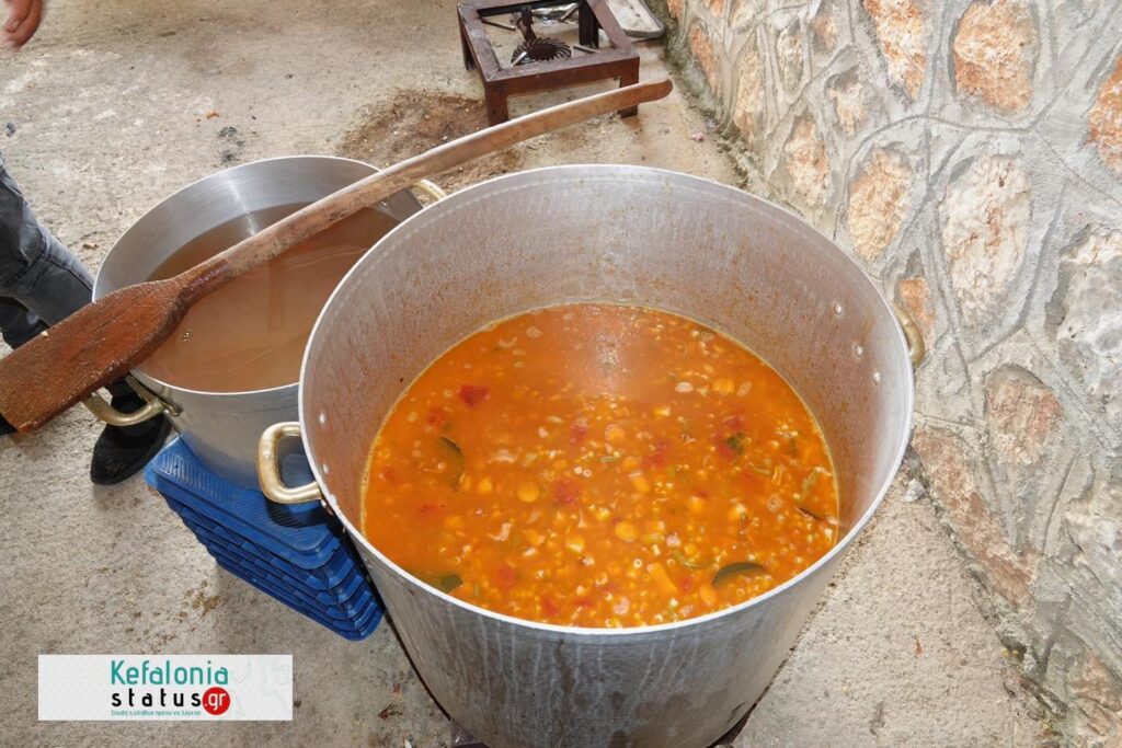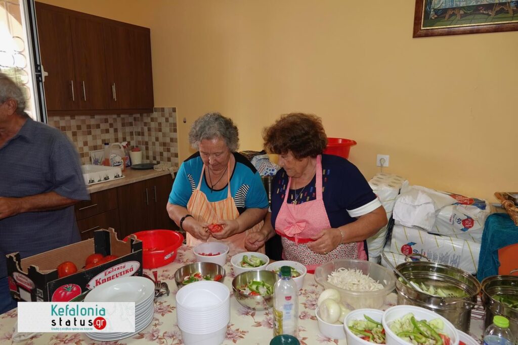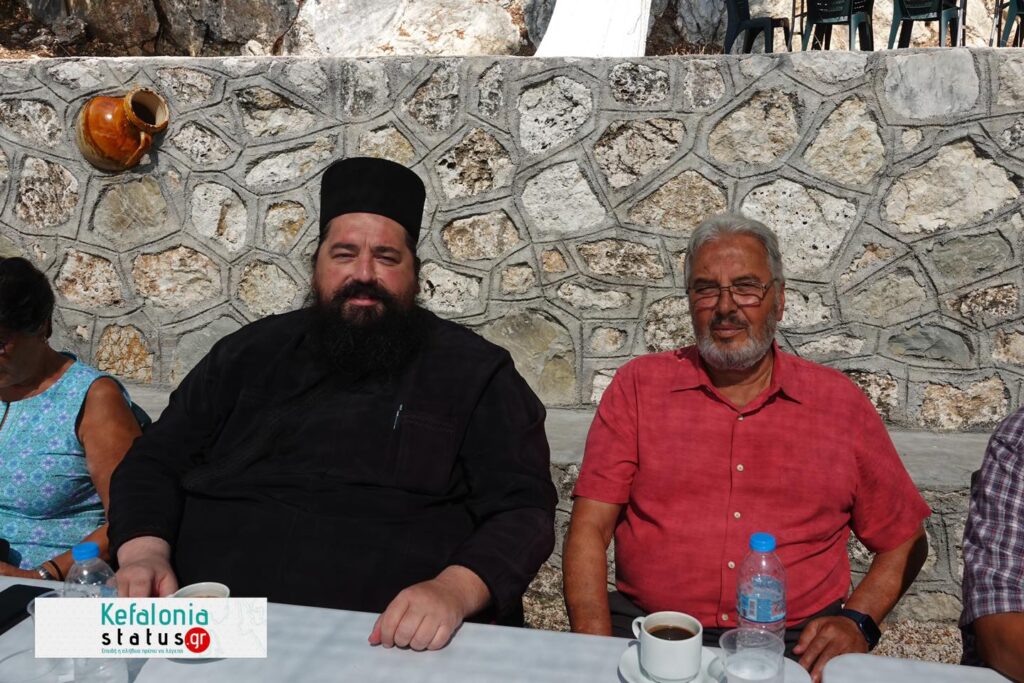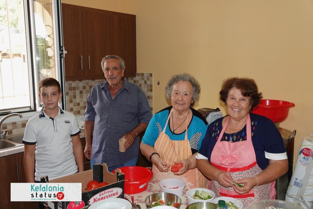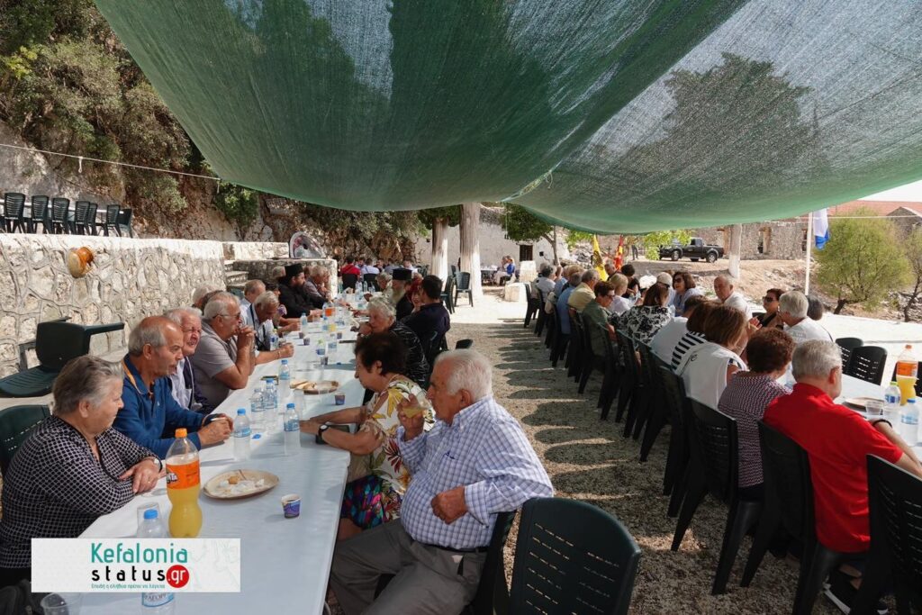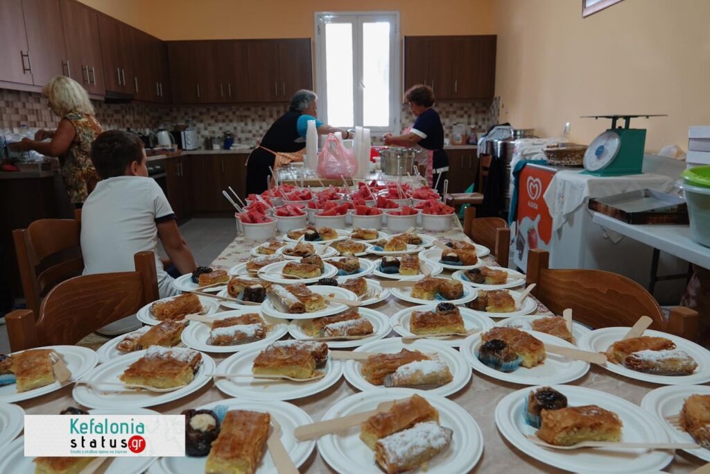 Εικόνες από πλούσιο γεύμα και τα γλυκίσματα της τράπεζας που παρατέθηκε μετά την θεία λειτουργία και την λιτανεία της εικόνας της Θεοτόκου μέχρι το αλώνι στην Ιερά Μονη Γενεσιου Θεοτόκου.