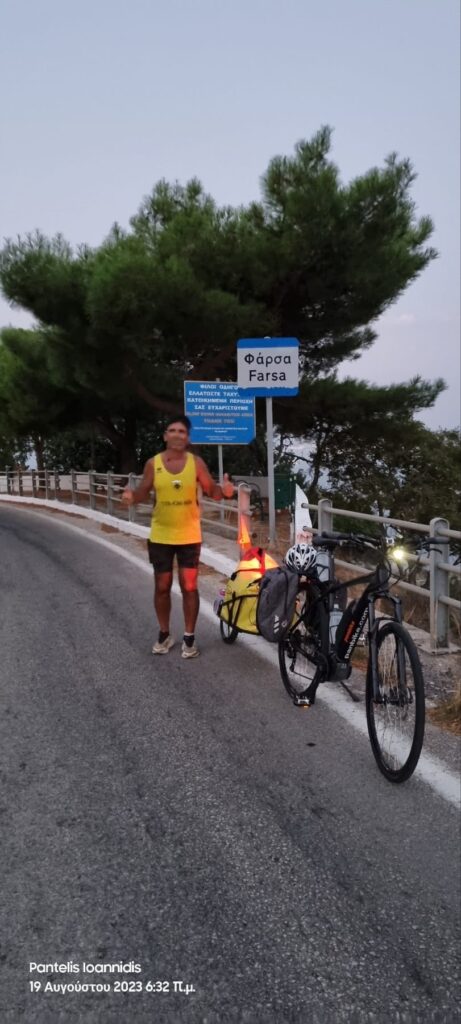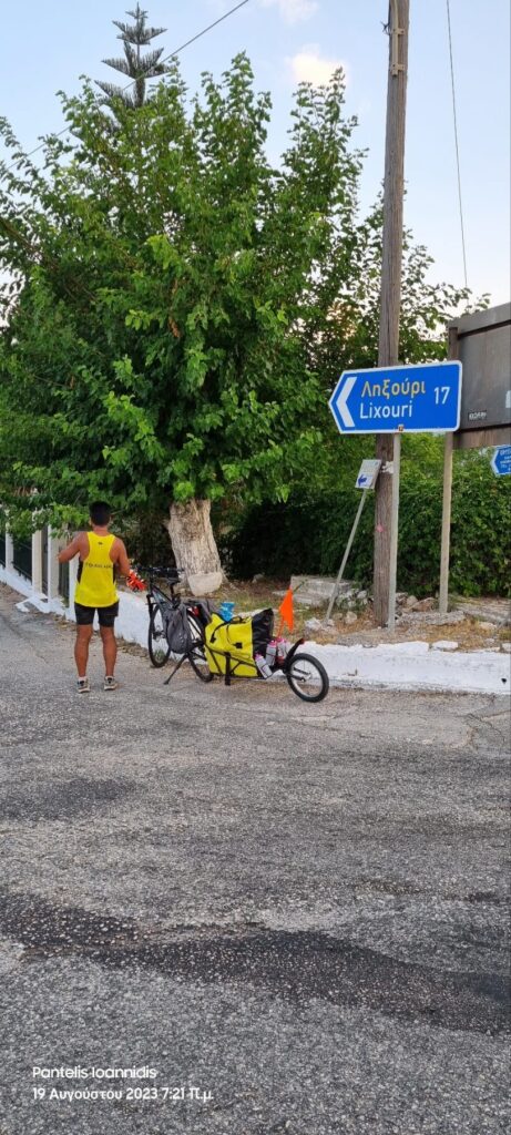 Ξεκίνησε από τη γέφυρα Δεβοσέτου και μέχρι το μεσημέρι έχει τρέξει σχεδόν όλο το γύρο της Παλλικής. Στη συνέχεια θα κατευθυνθεί προς το Φισκάρδο κι αυτή είναι μόνο η αρχή αφού το εγχείρημά του αναμένεται να διαρκέσει γύρω στις 50 ώρες!