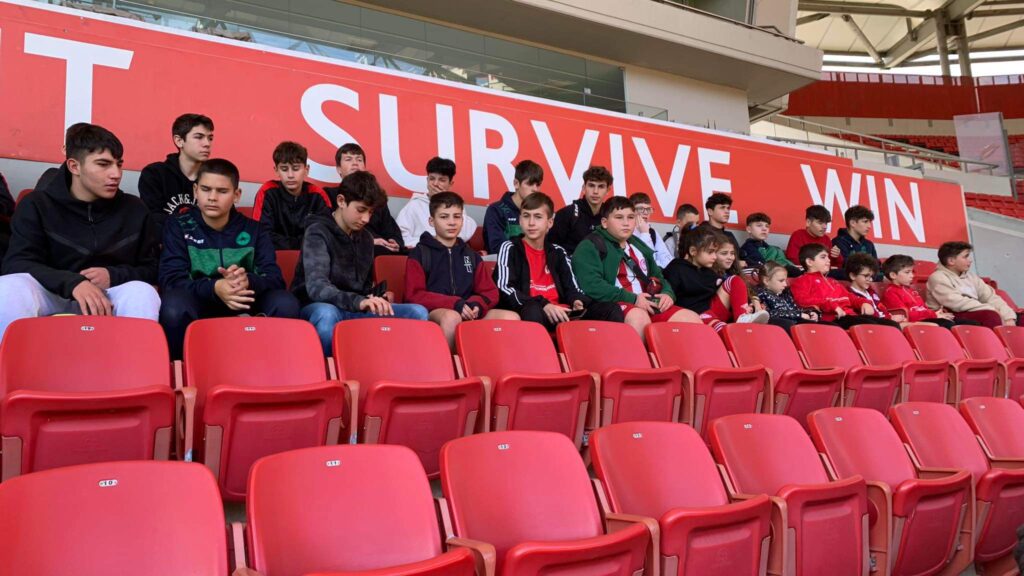 Τα παιδιά και οι συνοδοί τους έζησαν την ξεχωριστή εμπειρία καθώς επισκέφτηκαν και ξεναγήθηκαν σε όλους τους χώρους του “Γ. Καραισκάκης” από τον διευθυντή ακαδημιών Κο Νάνο Βασίλη, τον οποίο ευχαριστούμε για όλη τη συνεργασία και την υποστήριξη.